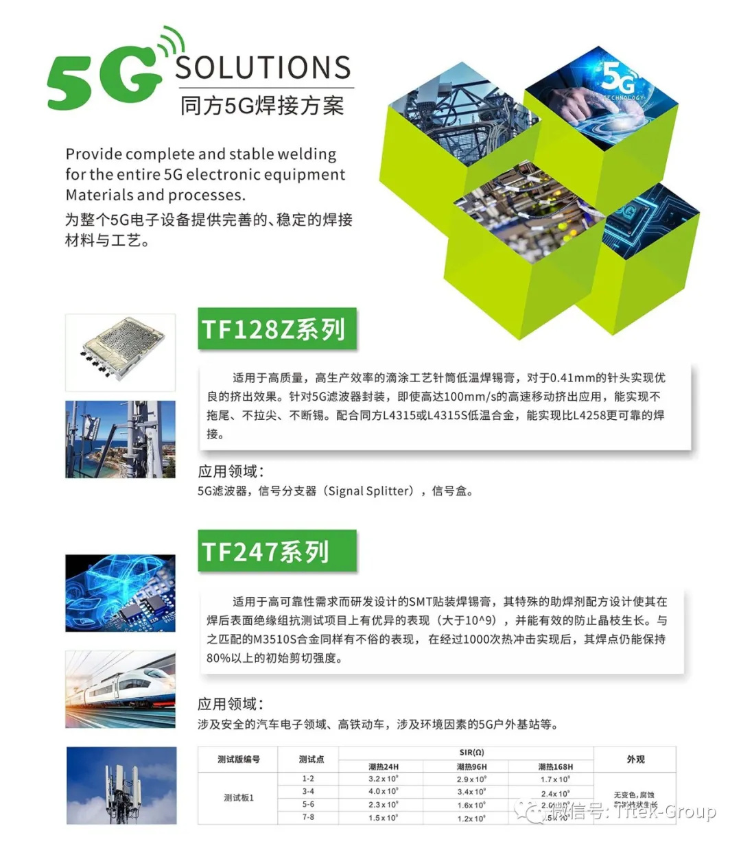 同方電子經過二十余年的發展,已成為電子焊接材料龍頭企業。在無鉛無鹵助焊劑、焊錫膏、清洗劑領域更是行業佼佼者。2020 NEPCON ASIA盛會我司將亮相最新環保、安全的產品,包含5G專用焊錫膏、UV三防漆、半水基清洗劑、高可靠光伏助焊劑、SAC-X系列合金。